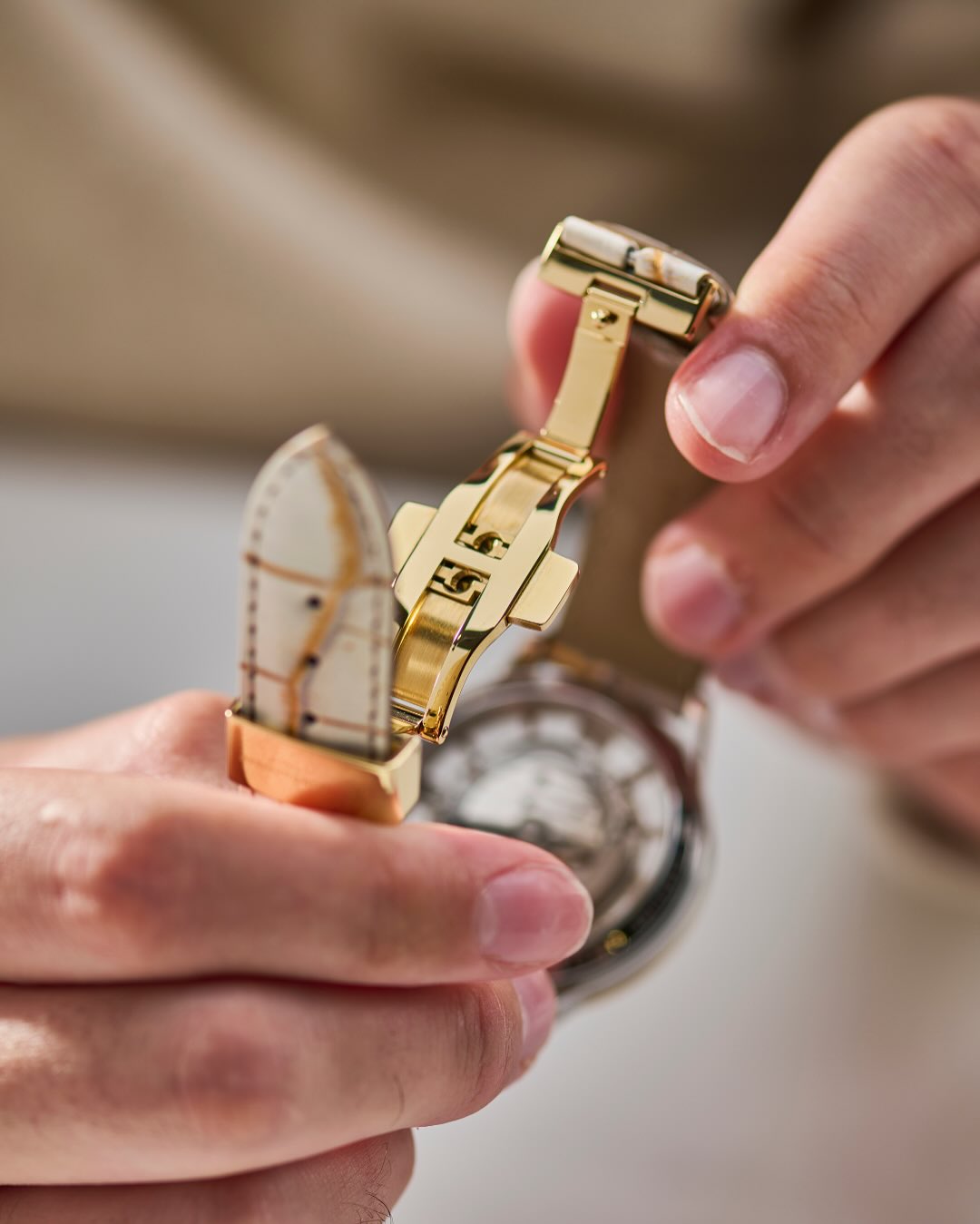 Une sélection soignée de bracelets emblématiques en alligator, cuir de veau et caoutchouc.
