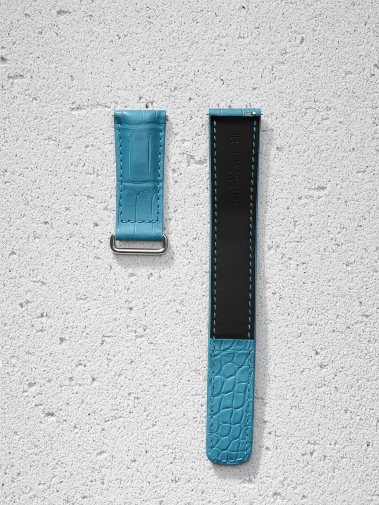 Le bleu arctique de ce bracelet en alligator rappelle la fraîcheur d’un éclat de glace sous le soleil. Avec sa teinte lumineuse, ce bracelet velcro est idéal pour les montres au boîtier argent. Un modèle parfait pour les journées chaudes !