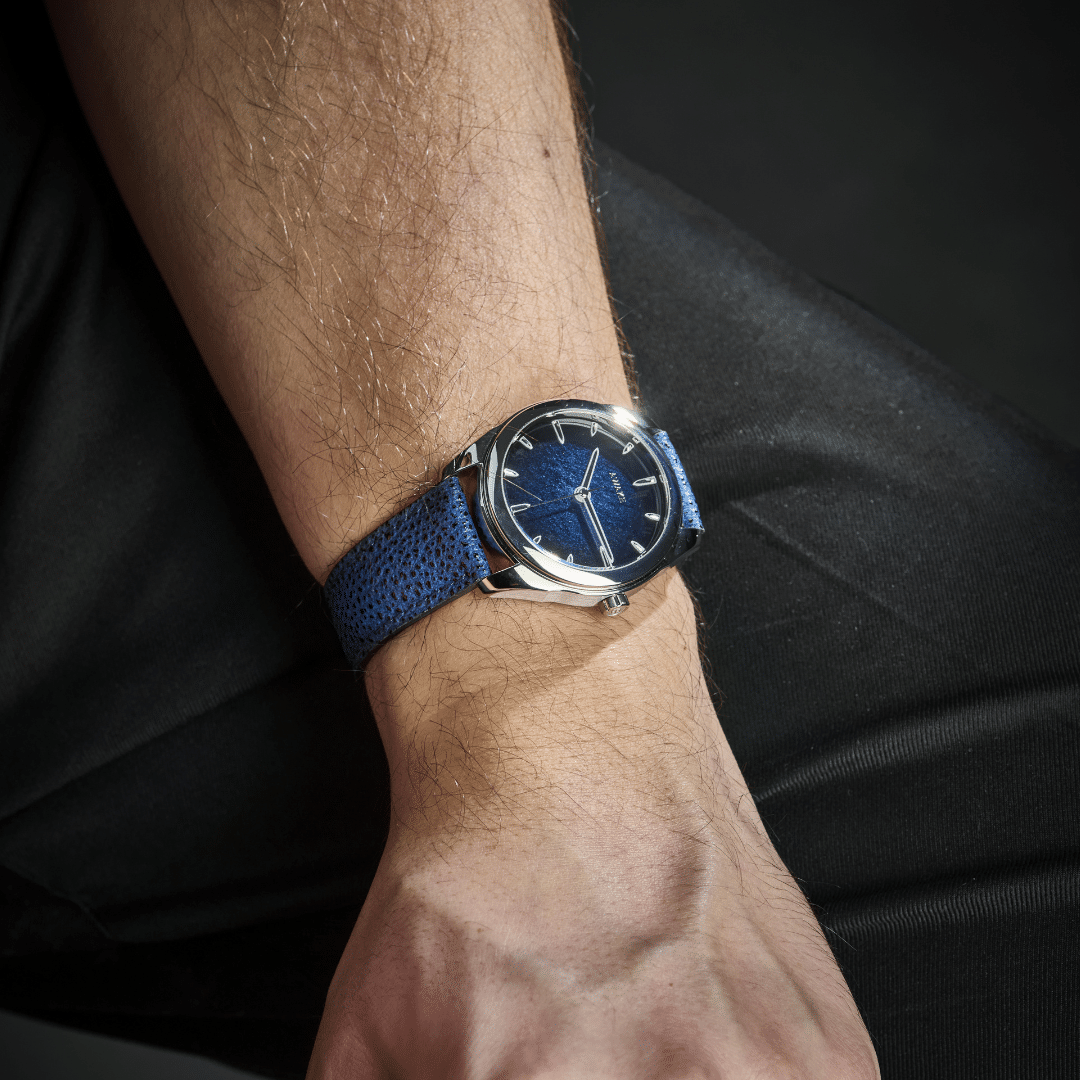 Ce cuir est disponible chez Jean Rousseau en cinq couleurs – noir, marron, bleu, rouge et violet – et peut être utilisé pour des bracelets de montre, de la petite maroquinerie, ou encore des ceintures. Il peut également être choisi dans le cadre de notre service sur mesure, pour réaliser des pièces personnalisées à partir de cette matière, selon les besoins de chaque client.
