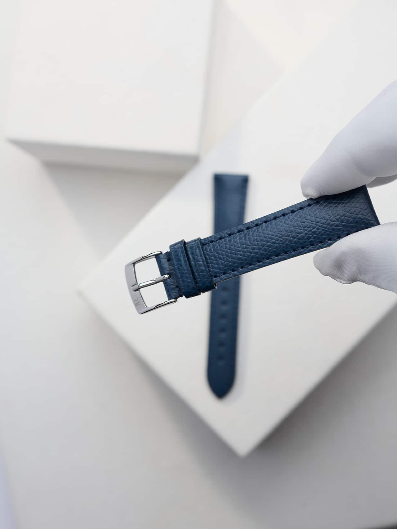 Jean Rousseau's Classic watch strap is slightly padded, with stitching and a cut edge. Our most versatile watch band can be fitted on your watch, and infinitely customized.