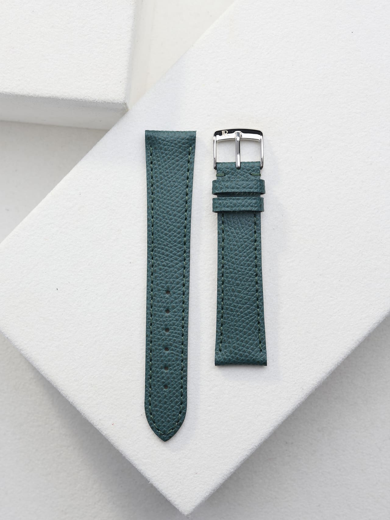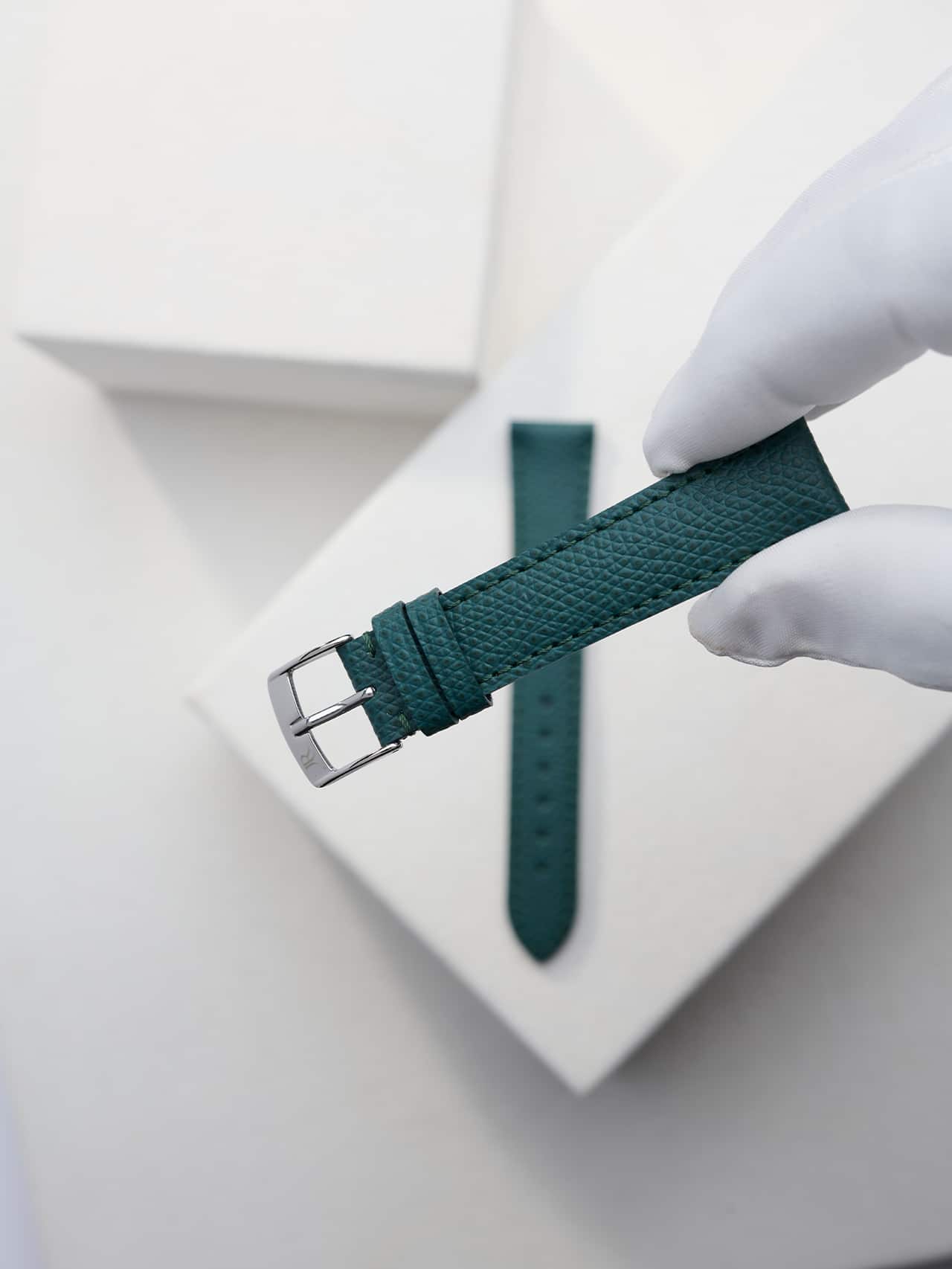 Jean Rousseau's Classic watch strap is slightly padded, with stitching and a cut edge. Our most versatile watch band can be fitted on your watch, and infinitely customized.