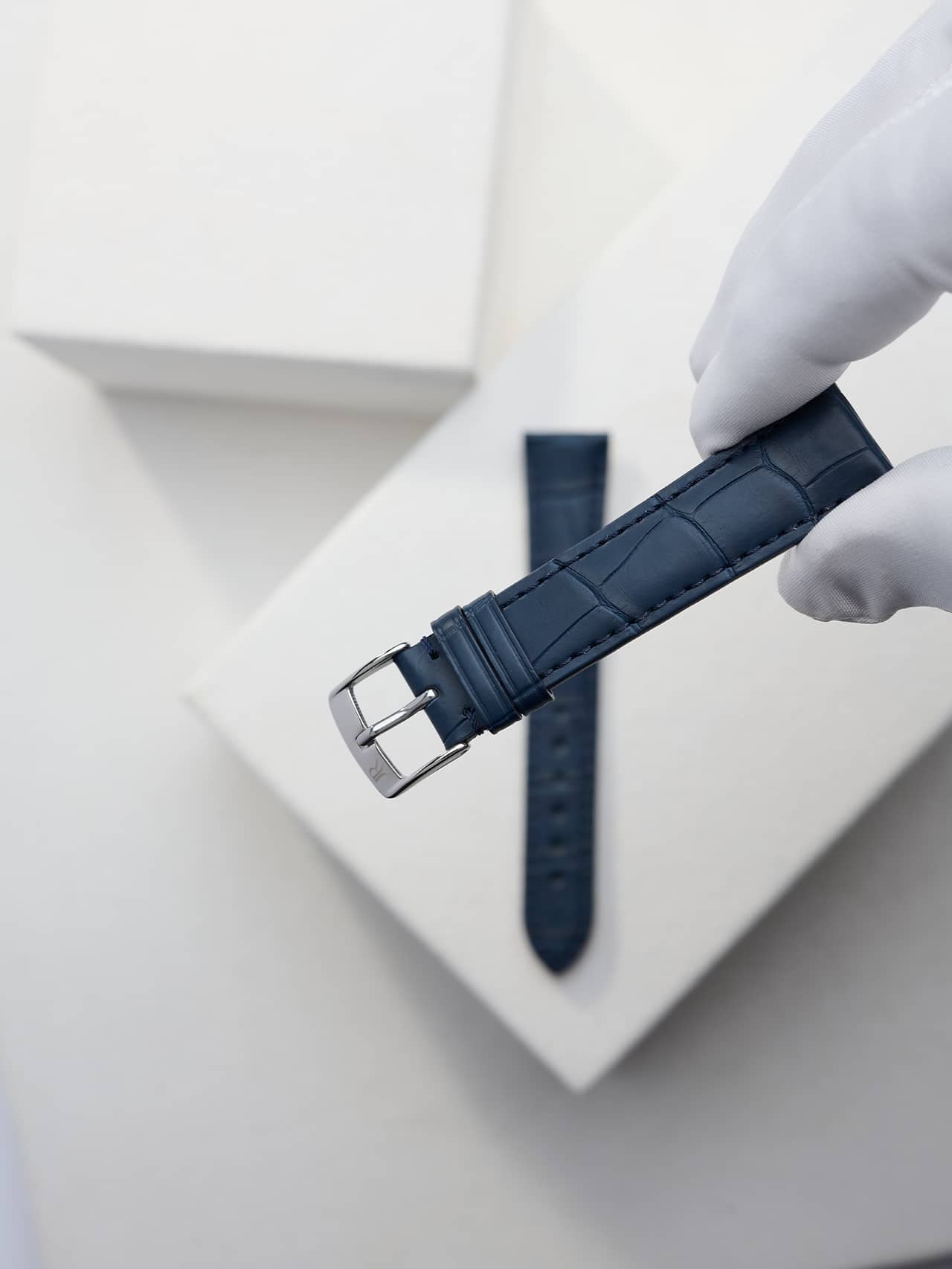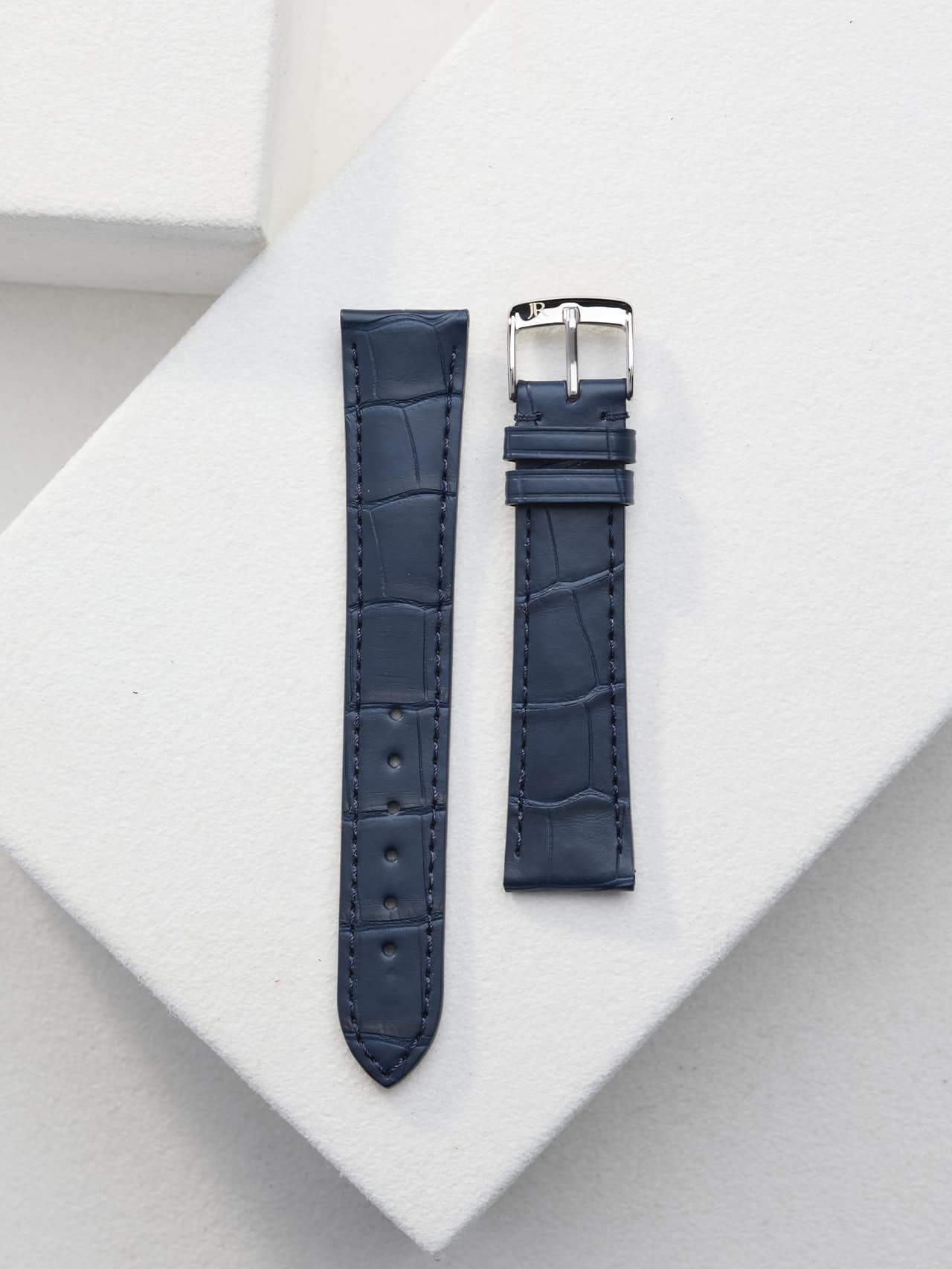 Our semi-matte alligator strap in navy blue color is the right nuance on your wrist to go sailing or to sit quietly and handwrite letters.