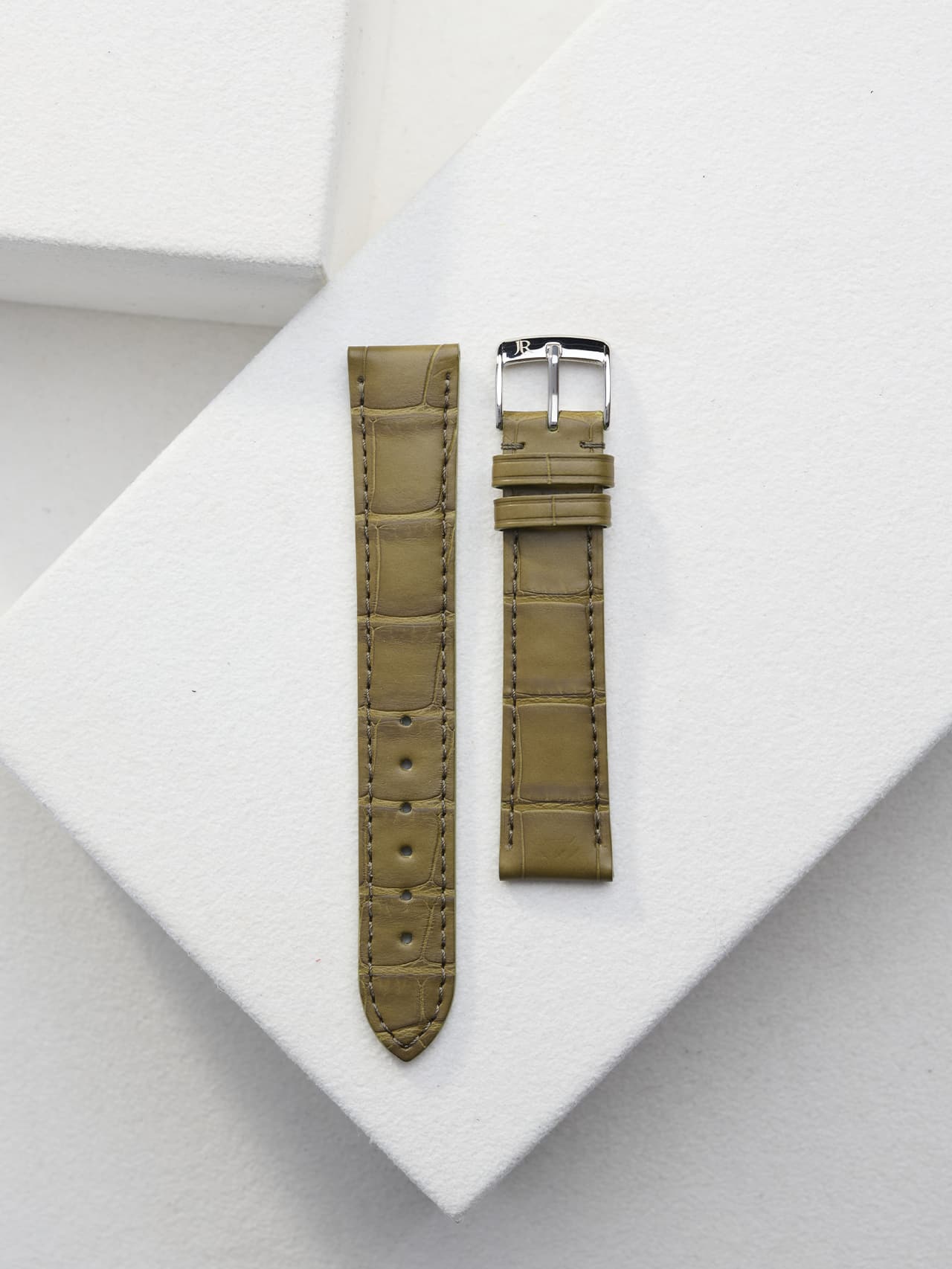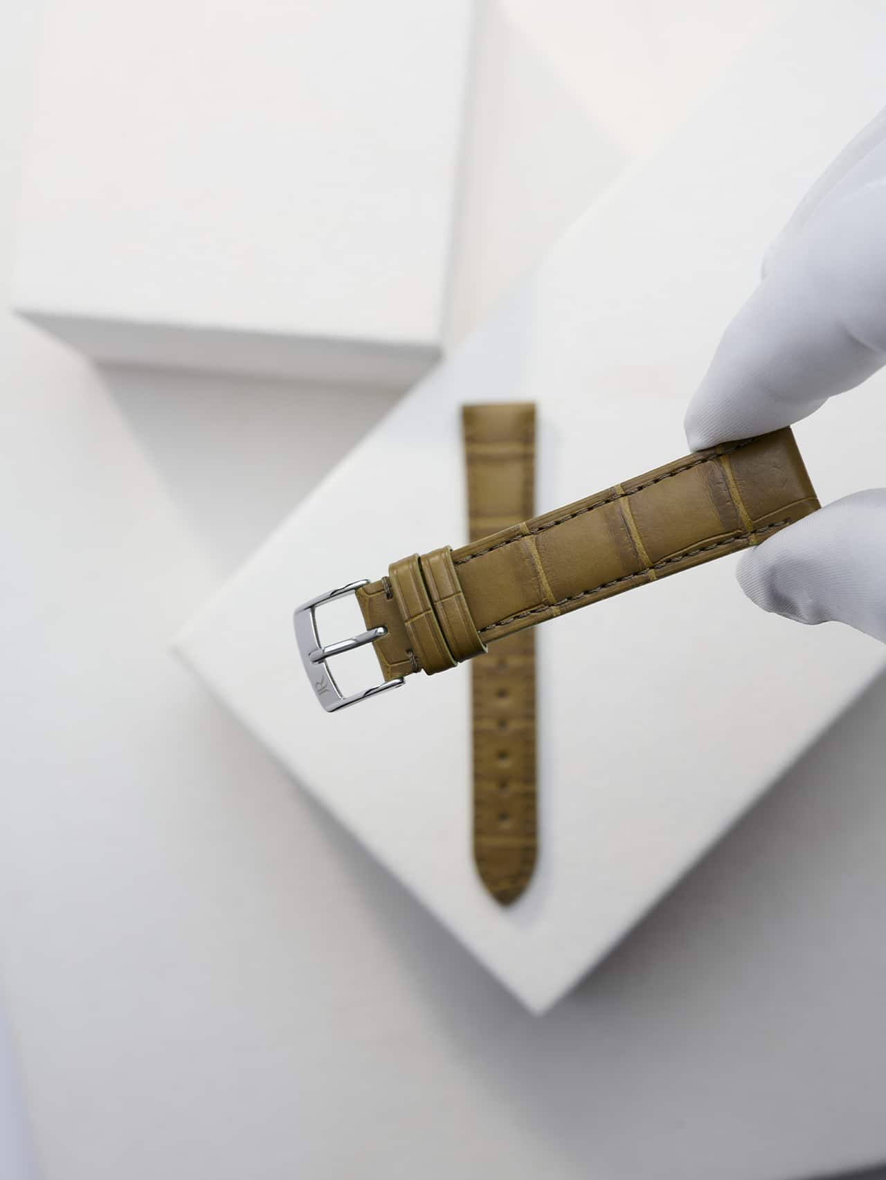 Jean Rousseau's Classic watch strap is slightly padded, with stitching and a cut edge. Our most versatile watch band can be fitted on your watch, and infinitely customized.